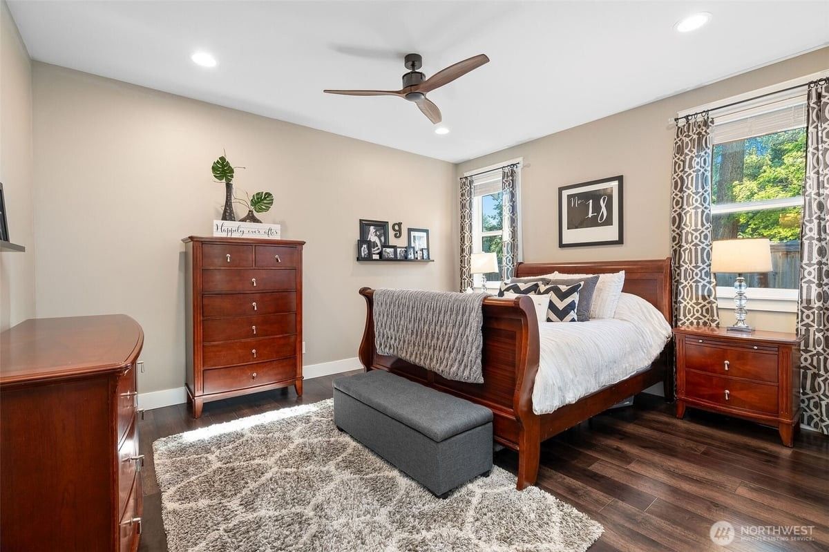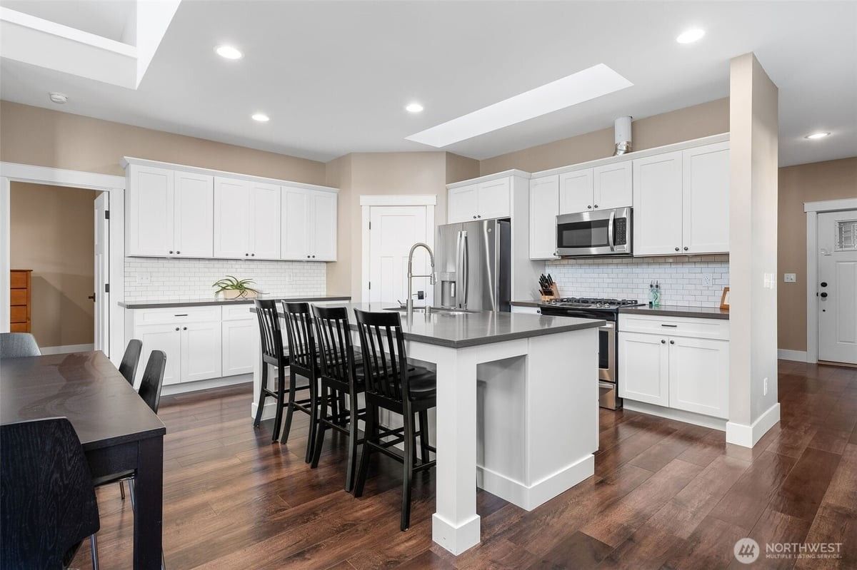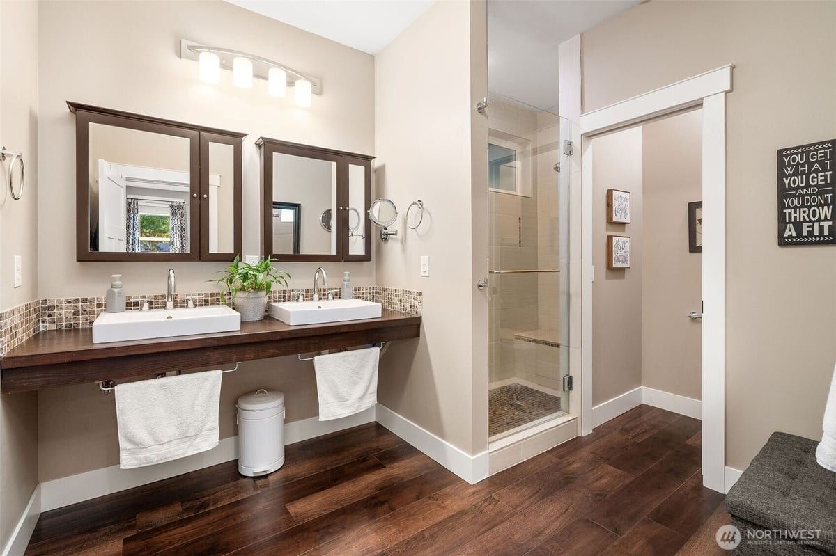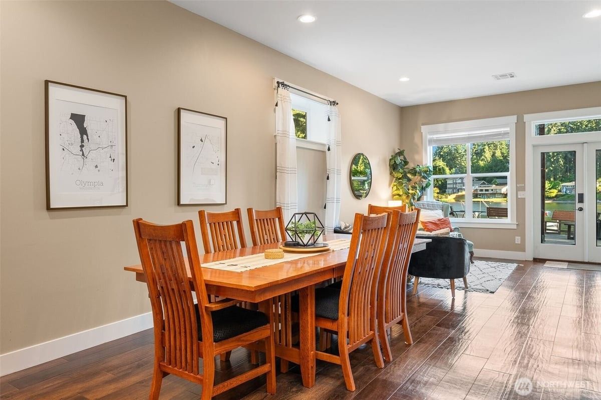 Long Lake Luxury + Passive Income = Dream Waterfront Setup! Over 6500sqft & flex layouts to use as 1, 2 or 3 units. Airbnb with private entrance, stays furnished & grossed $25K last yr without summer bookings! Unit A has main floor primary 3BR + den, gym-ready basement and sauna. Unit B can stay whole or split again. All have waterproof luxury vinyl plank throughout, quartz counters, separate heatpumps, tankless H2O heaters & laundry. Outside, find gated entry, huge new driveway with room for guests & pickleball, 4-car garage, more covered parking, flat lawn, oversized patio, big deck, & yes, 2 docks + mooring whips! Minutes to I-5 & Costco, this one makes the math work with flexibility for your compound or small empire in the making!